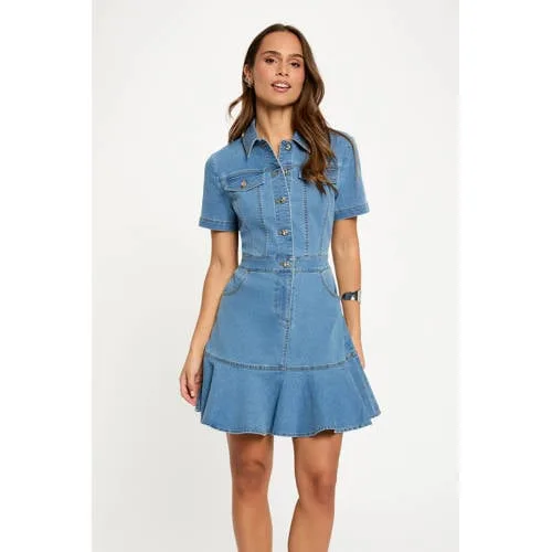 Morgan denim A-lijn jurk medium blue denim Prijzen