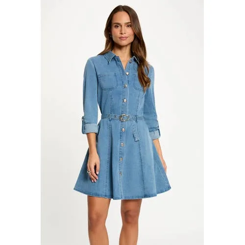 Morgan denim A-lijn jurk medium blue denim