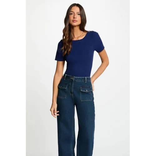 Morgan fijngebreide top donkerblauw