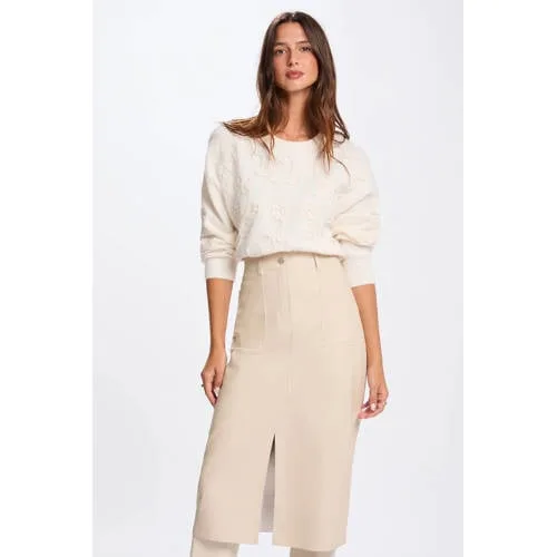 Morgan gebloemde gebreide trui met wol ecru