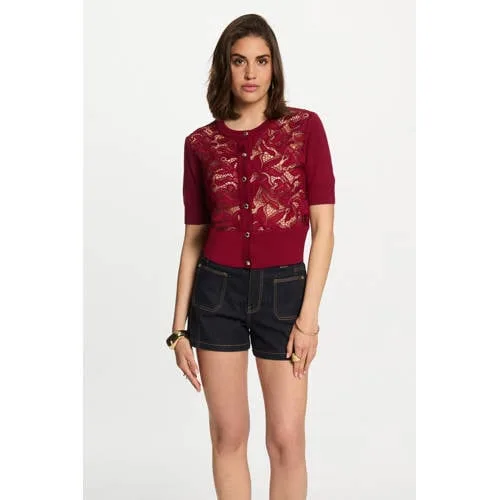 Dit vest van Morgan heeft korte mouwen en een ronde hals met knoopsluiting. De rechte mouwen geven een tijdloze uitstraling. Gemaakt met kantdetails, ideaal voor een eenvoudige en stijlvolle look bij verschillende gelegenheden.