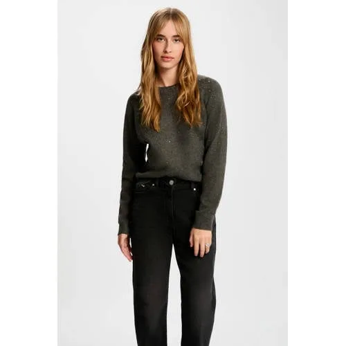 Morgan gebreide trui met wol grijs met glitter Prijzen
