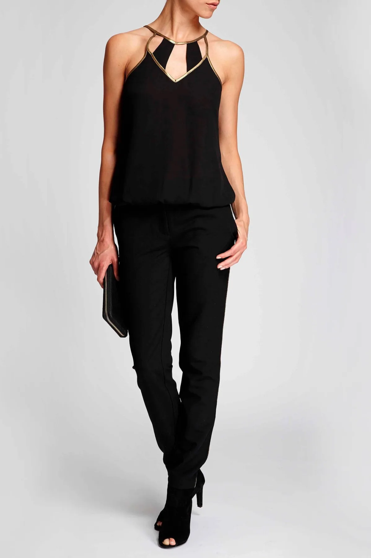 Morgan haltertop met contrastbies zwart/goud Prijzen