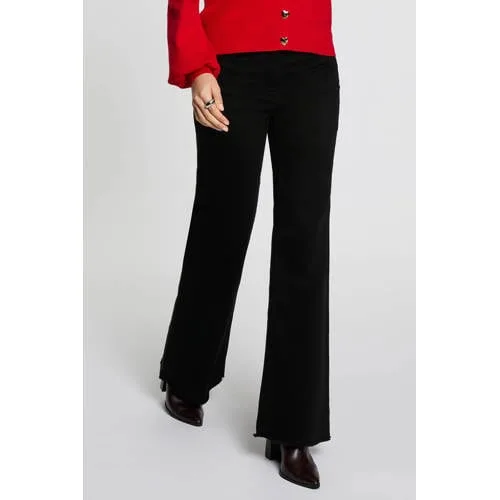 Voor een relaxed maar verzorgd silhouet is deze Morgan wijde jeans met hoge taille een sterke basis in je garderobe. De hoge taille legt het accent op je taille, terwijl de lange, wijde pijpen een moderne, casual chique look geven. In de diepe zwarte wassing in black denim draag je deze broek net zo makkelijk naar je werk als in het weekend.Belangrijke kenmerken van deze Morgan jeans Wijde pasvorm met lichte bootcut voor een mooi, vloeiend effect langs het been Hoge taille die je silhouet optisch verlengt en veel combineergemak geeft Lange lengte, ideaal voor enkellaarsjes, sneakers of pumps Rits- en knoopsluiting met riemlussen en klassiek vijfpocket ontwerp Effen zwarte kleur in black denim, makkelijk te combineren met tops in elke stijl Gemaakt van katoen, polyester, viscose en elastaan voor een stevige stof met lichte stretch Maatadvies: deze jeans valt klein, kies bij twijfel een maat groter voor een comfortabele pasvormStyling met een wijde high waist jeansDeze wijde jeans komt mooi tot zijn recht met een vloeiende blouse en enkellaarsjes met hak voor een verzorgde look. Liever iets stoerder, dan is een aangesloten top met een kort, getailleerd jasje en pumps een passende combinatie. Door de hoge taille kun je tops makkelijk in de broek dragen voor extra nadruk op je taille.Morgan, Franse stijl met een moderne twistMorgan staat bekend om vrouwelijke items met een eigentijdse uitstraling. De collecties spelen in op trends, maar blijven goed draagbaar in het dagelijks leven. Zo voeg je met elke Morgan jeans een betrouwbaar en modisch basisstuk toe aan je kast.Een veelzijdige jeans die je keer op keer uit de kast pakt voor een moderne, ontspannen look.