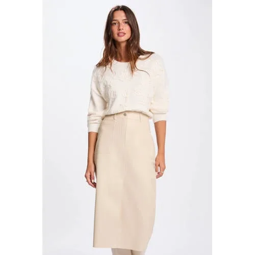 Deze lange rok in ecru imitatieleer heeft een moderne, verfijnde uitstraling. De hoge taille laat je silhouet optisch langer lijken, terwijl de rechte, aansluitende snit de vorm van je lichaam volgt zonder strak aan te voelen. Als stijlvolle imitatieleren rok is dit midi model een betrouwbare basis voor zowel werkdagen als avonden uit.Kenmerken van deze ecru midi rok Lange, middelhoge midi rok die tot net onder de knie valt Aansluitende snit voor een gestroomlijnd effect Gemaakt van imitatieleer met een gladde, moderne structuur Effen ecru kleur die makkelijk te combineren is met diverse stijlen Rits- en knoopsluiting voor een stevige, nette tailleband Praktische zakken voor en achter voor een subtiel casual detail Artikel valt klein, bij twijfel is een maat groter aan te radenGeschikt voor werk en vrije tijdDeze rok leent zich goed voor dagen op kantoor, afspraken in de stad en etentjes. Door de effen kleur en de rustige belijning past het model bij verschillende tops, jassen en schoenen, waardoor het eenvoudig is om outfits samen te stellen die passen bij het moment.Morgan, Franse elegantie met een moderne twistMorgan staat bekend om vrouwelijke ontwerpen met een stadse uitstraling die goed aansluiten op het dagelijks leven. De collecties volgen trends, maar blijven tegelijkertijd draagbaar en toegankelijk. Met deze rok kies je voor een doordacht ontworpen item dat seizoen na seizoen meegaat.Een veelzijdige basisrok die je garderobe op een rustige, moderne manier compleet maakt.