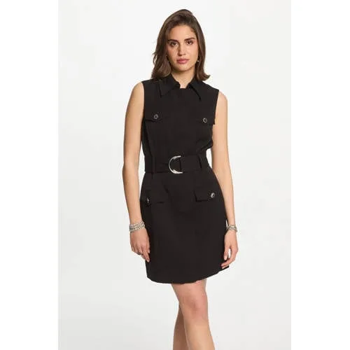 Deze jurk van Morgan is mouwloos en heeft een korte lengte. De jurk is gemaakt van polyester en heeft een V-hals, ritssluiting, ceintuur en sierzakken. Je draagt deze jurk makkelijk bij veel gelegenheden.