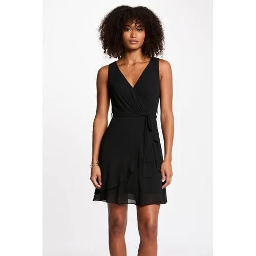 Deze jurk van Morgan is mouwloos en heeft een korte lengte met een V-hals. De jurk komt met een rits, riemlussen, een ceintuur, ruches en een volant.