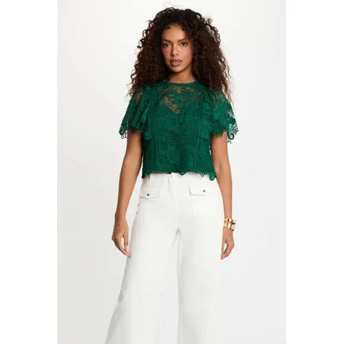 Deze donkergroene Morgan top van kant is een geschikte keuze voor dagen waarop je er net iets meer verzorgd uit wilt zien. De korte, getailleerde pasvorm volgt subtiel je silhouet en valt op door de semi-transparante guipure inzetten. De ronde hals en korte, iets wijdere mouwen met ruches geven de top een verfijnde uitstraling zonder dat het te druk oogt.Verfijnde details in kant Getailleerde korte top die de natuurlijke vormen volgt Guipurekant en semi-transparante details voor een geklede uitstraling Ronde halslijn die aansluit zonder hoog te sluiten Korte, wijde mouwen met ruches voor extra detail Effen donkergroene kleur die goed combineert met neutrale en donkere tinten Geen sluiting, de top trek je over het hoofd aan Valt klein uit, een maat groter kan passend zijnStyling voor dagelijks en avondgebruikVoor een verzorgde dagelijkse outfit combineer je deze top met een broek met hoge taille en sandalen met hak. Voor een avondje uit past de top goed bij een vloeiende midi-rok en een compacte schoudertas. Een neutrale top eronder kan prettig zijn als je minder huid wilt laten zien.Morgan: Franse stijl met aandacht voor detailMorgan ontwerpt mode met aandacht voor vorm en detail. Het merk vertaalt een Franse stijl naar toegankelijke items die je goed in je dagelijkse garderobe kunt opnemen. Met deze top kies je voor een doordacht ontworpen kledingstuk, waarbij pasvorm en uitstraling centraal staan.Past bij momenten waarop je er net even extra verzorgd uit wilt zien.