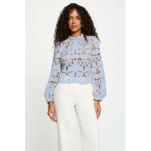 Morgan kanten top lichtblauw