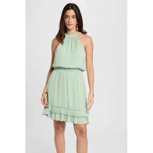 Deze lichtgroene korte dames jurk van Morgan heeft een rechte, vloeiende pasvorm die modern en vrouwelijk oogt. De opstaande kraag legt subtiel de nadruk op je halslijn, terwijl de transparante voiledetails zorgen voor een luchtige, zomerse uitstraling. Door de ruches ontstaat er beweging in het silhouet, wat de jurk geschikt maakt voor zowel een speciale gelegenheid als een etentje op een warme avond.Verfijnde details in een licht silhouet Korte jurk met rechte snit voor een moderne, cleane look Mouwloos ontwerp, ideaal voor zomerse dagen en avonden Voile inzetten geven een lichte, transparante touch Ruches zorgen voor extra beweging en een speels effect Opstaande kraag met striksluiting in de nek voor een elegante afwerking Effen lichtgroene kleur, makkelijk te combineren met hakken of sandalen Valt klein, het is aan te raden om een maat groter te kiezenVan bruiloftsgast tot zomerse borrelDankzij de vloeiende stof en de verfijnde details is deze jurk zeer geschikt als outfit voor een bruiloftsgast. In combinatie met sandalen met hak en een kleine tas creëer je een vrouwelijke look. Voor een meer geklede stijl kan er een gestructureerde blazer overheen worden gedragen.Morgan: eigentijdse vrouwelijkheidMorgan staat bekend om kleding die vrouwelijkheid en trendgevoel combineert met een heldere, moderne stijl. De jurken zijn vaak afgewerkt met doordachte details, waardoor je met weinig moeite een complete, verzorgde outfit hebt.Een lichte en elegante keuze voor momenten waarop je net wat meer gekleed wilt zijn.