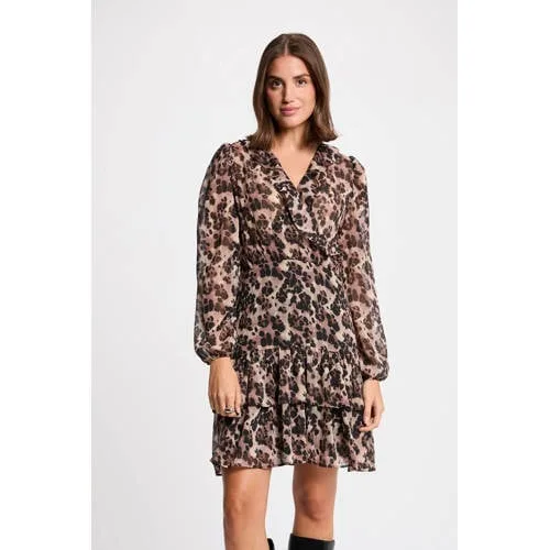 Morgan korte jurk met panterprint met glitter bruin