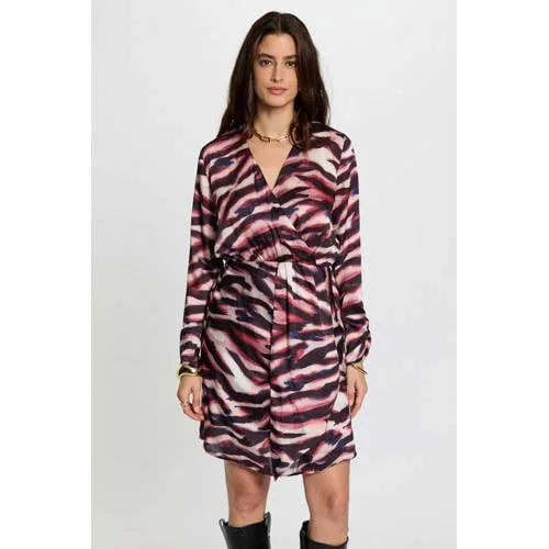 Design: Gevoerde zoom/rand, Rechte zoom, Wikkel-look; Materiaal: Gerecycled materiaal; Halstype: Wikkeltop; Motief: Dierenprint; Details: Gedrapeerd; Extra's: All-over patroon, Gladde stof; Lengte: Kort/mini; Snit: Getailleerd; Pasvorm: Normale pasvorm; Armlengte: Lange mouw