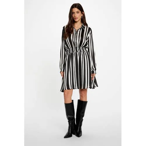 Deze jurk van Morgan heeft rechte mouwen en een klassieke kraag met knoopsluiting. De jurk is kort en gemaakt van polyester. Smockwerk geeft een speels effect aan het ontwerp, je draagt dit makkelijk dagelijks.