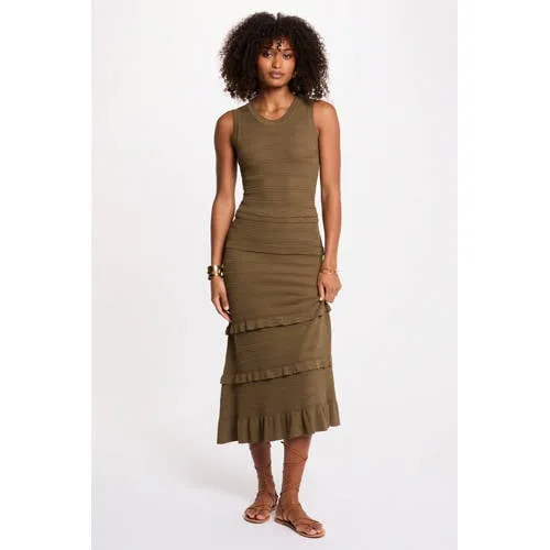 Met deze Morgan midi jurk met ruches geef je je dagelijkse look een verzorgde, vrouwelijke uitstraling. De jurk heeft een rechte pasvorm met subtiele taille, waardoor het silhouet mooi wordt verlengd. De middel-lange 3/4-lengte tot rond de knie oogt rustig en modern, terwijl de kakigroene kleur makkelijk te combineren is met jouw favoriete sandalen of sneakers.Verfijnde details voor elke dag Midi lengte met 3/4-lengte rok voor een elegant, rustig silhouet Getailleerde snit die de taille mooi accentueert Mouwloos model met ronde hals voor een open, zomerse look Zachte, soepele stof met fijn breisel voor draagcomfort Effen kakigroene kleur, makkelijk te combineren Zonder sluiting, de jurk trek je eenvoudig over het hoofd aan Geen zakken, waardoor de rechte lijn mooi strak blijft Valt klein, een maat groter bestellen wordt aangeradenStyling voor kantoor, citytrip of dinerVoor overdag combineer je de jurk met platte sandalen en een eenvoudige armband. Wil je meer contrast, kies dan voor een gestructureerde blazer, pumps en een compacte clutch. Zo wissel je snel van een casual naar een meer geklede uitstraling, zonder om te hoeven kleden.Zorgeloos kiezen voor MorganMorgan staat bekend om vrouwelijke ontwerpen met een moderne twist, die goed passen in een druk leven vol werk, afspraken en leuke momenten. Met duidelijke pasvormen en doordachte details biedt het merk mode die je vaak en graag uit de kast pakt. Was de jurk op 30°C op een ultra-delicaat programma en strijk op lage temperatuur zonder stoom, dan blijft de kwaliteit van het breisel mooi behouden.Een veelzijdige jurk die je garderobe net dat beetje extra geeft, seizoen na seizoen.