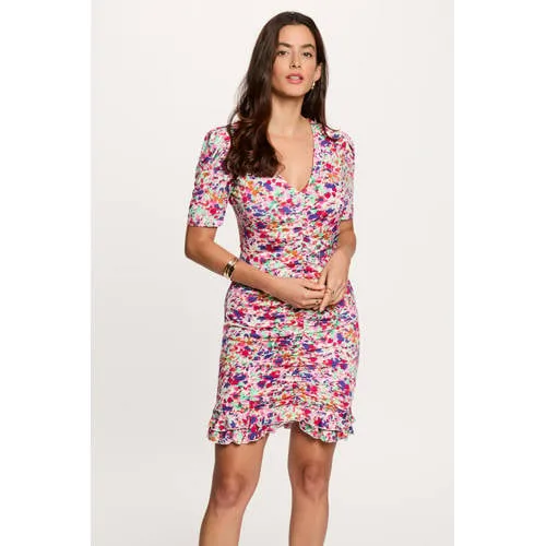 Deze korte, aansluitende Morgan jurk met pofmouwen geeft je outfit direct een moderne en verfijnde uitstraling. De combinatie van een vrouwelijke V-hals, halflange mouwen en een mini lengte zorgt voor een speels silhouet, terwijl de zachte, soepele stof prettig aanvoelt op de huid. De geplooide details en ruches benadrukken je figuur op een subtiele manier en bewegen mooi met je mee.Details die het verschil maken Mini jurk met aansluitende pasvorm voor een vrouwelijk silhouet V-hals en halflange pofmouwen voor een moderne, elegante look Geplooide details en ruches die de jurk een bewerkte uitstraling geven Vloeiende stof die soepel langs het lichaam valt Roze en paarse kleur met all over print, geschikt voor zowel overdag als 's avonds Zonder sluiting, waardoor je de jurk eenvoudig aantrekt Valt klein, een maat groter bestellen wordt geadviseerd Onderhoud: fijnwas op 30°C, laag strijkprogramma tot 110°C zonder stoomVoor werk, diner of zomerse borrelDeze jurk past goed bij delicate sandalen of elegante pumps. Een gestructureerde tas erbij en je bent klaar voor een diner, een zomerse borrel of een speciale gelegenheid. Door de mini lengte en de halflange mouwen voelt de jurk luchtig, wat prettig is op warme dagen.Franse flair van MorganMorgan staat voor vrouwelijk design met een moderne, stadsgerichte stijl. De collecties spelen in op trends, maar blijven draagbaar voor alledaagse momenten. Met deze jurk haal je een verzorgde en modieuze toevoeging in huis waar je veel plezier van hebt.Een stijlvolle keuze als je graag een opvallende, maar toch toegankelijke jurk draagt.