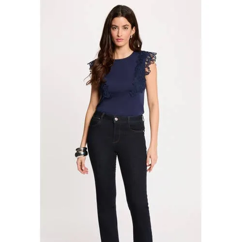 Deze Morgan top dames is een praktische basic met rustige details die je garderobe makkelijk aanvult. De top heeft een ronde hals en korte, rechte mouwen, waardoor het model eenvoudig te combineren is met broeken en rokken. Gemaakt van 100% katoen voelt het materiaal zacht en soepel aan op de huid. De effen kleur vormt een strakke basis, terwijl de kanten details zorgen voor een subtiel accent. Let op: dit artikel valt relatief klein, een maat groter kan daarom beter aansluiten bij je voorkeur.Kenmerken van deze katoenen top Artikeltype: dames top met korte mouwen en ronde hals Gemaakt van 100% katoen voor een zachte en soepele touch Effen uitvoering met kanten details langs de stof Rechte mouwen voor een rustig en tijdloos silhouet Zonder zakken, waardoor de lijn van het model strak blijft Maatinformatie: valt klein ten opzichte van de maatvoeringGeschikt voor diverse combinatiesDeze top laat zich eenvoudig stylen voor dagelijks gebruik, van werk tot vrije tijd. In combinatie met een jeans ontstaat een casual outfit, terwijl de top met een nette broek of rok passend is voor meer formele momenten. Door de effen kleur vormt de top een neutrale basis die goed samengaat met verschillende accessoires.Morgan met aandacht voor vorm en afwerkingMorgan ontwerpt kleding met aandacht voor pasvorm en details. De collecties sluiten aan op actuele modebeelden, maar blijven geschikt voor dagelijks dragen. Met deze top voeg je een katoenen basisshirt toe dat je gemakkelijk in meerdere seizoenen kunt gebruiken.Een veelzijdige basis met kanten accenten die je eenvoudig in je bestaande garderobe opneemt.