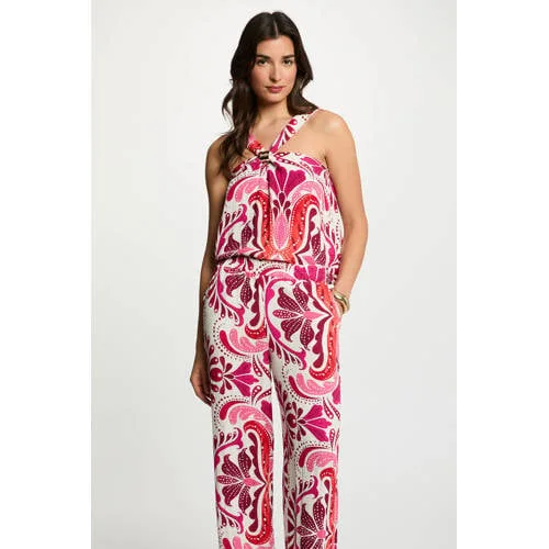 Geef je zomerse outfits een nieuwe draai met deze Morgan top met paisley print in ecru en roze. De halterhals met smalle bandjes legt het accent op je schouders en hals, terwijl de aansluitende pasvorm je silhouet duidelijk laat uitkomen. Het geknoopte detail aan de voorkant zorgt voor een rustig effect dat direct in het oog springt, zonder dat de top druk oogt.Details die het verschil maken Aansluitende, korte top met elastische inzet voor een mooie, aangesloten fit Hoge halterhals met smalle spaghettibandjes die de bovenkant open en luchtig houdt Geknoopt detail aan de voorkant dat de taille subtiel benadrukt Zachte, soepele stof met paisley print in ecru en roze tinten Mouwloos model, ideaal voor warme zomerdagen en -avonden Valt klein, een maat groter kiezen wordt aangeradenStyling voor elke dag van de weekVoor een zachte uitstraling combineer je de top met een soepelvallende broek en sandalen met hak. Wil je een meer casual combinatie, draag de top dan met een high waisted jeans en een kort jasje. Met een paar sieraden in metaal komt de paisley print extra goed naar voren.Morgan, Franse stijl voor elke dagMorgan staat bekend om mode met een vrouwelijke en stadsgerichte uitstraling. De collecties volgen de laatste trends, met veel aandacht voor pasvorm en details. Zo voeg je met deze top eenvoudig een goed te combineren item toe aan je dagelijkse garderobe.Een zomerse basic met duidelijke print die je garderobe direct meer variatie geeft.