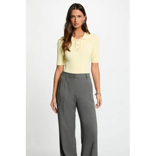 Geef je dagelijkse outfits een frisse update met deze lichtgele Morgan round-neck sweat trui met polokraag. De aansluitende pasvorm volgt soepel de lijnen van het lichaam en de reverskraag geeft een nette, verzorgde uitstraling. Korte mouwen maken dit een praktische top voor lente en vroege zomer, terwijl het zachte breisel comfortabel aanvoelt op de huid.Belangrijkste kenmerken van deze lichtgele trui Aansluitende pasvorm die het silhouet nauw volgt Reverskraag in polostijl voor een nette, moderne look Korte mouwen, ideaal voor het warmere seizoen of in laagjes Zacht, soepel breisel met hoog aandeel viscose voor een comfortabele touch Effen lichtgele kleur, makkelijk te combineren met basic en zakelijke items Subtiele ruches en knoopdetails voor een vrouwelijke afwerking Onderdeel van de Morgan Daily collectie, geschikt voor elke dag Maatadvies: dit model valt klein, kies bij twijfel een maat groterVeelzijdig in combinatieDeze trui past goed bij een high waist pantalon voor een nette werkoutfit. Ook op een kokerrok krijgt de polokraag een verzorgde rol. Liever casual, dan combineer je de top met een rechtvallende jeans en loafers of sneakers.Franse signatuur van MorganMorgan staat bekend om mode met een uitgesproken vrouwelijke stijl en een moderne, stadse uitstraling. Collecties worden ontworpen met aandacht voor details, pasvorm en draagbaarheid, zodat je items gemakkelijk in je bestaande garderobe integreert. Met deze trui haal je een Morgan ontwerp in huis dat geschikt is voor dagelijks gebruik.Een lichtgele trui die je makkelijk draagt van kantoor tot casual moment.