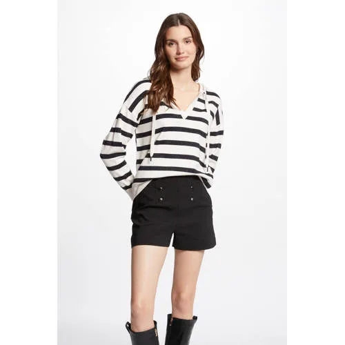 Deze trui voor dames van Morgan de Toi is gemaakt van een viscosemix en is gestreept. Het model heeft een capuchon en lange mouwen.