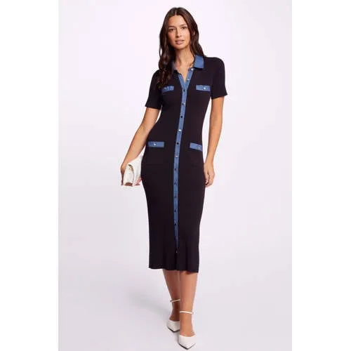Morgan ribgebreide bodycon jurk marine/donkerblauw