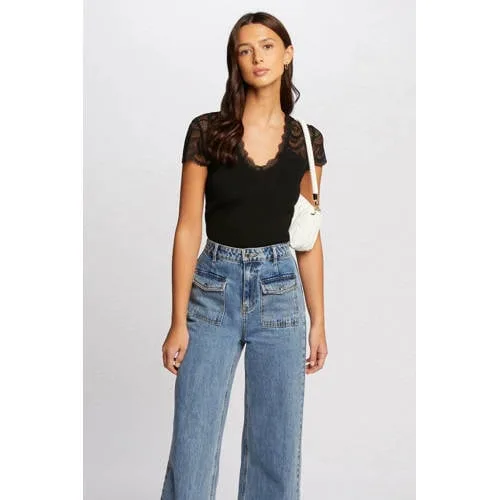 | Prijsgeschiedenis voor Morgan ribgebreide top met kant zwart | |