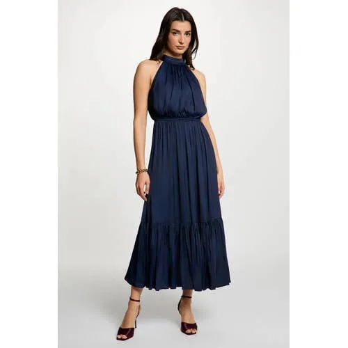 Morgan satijnen zomerjurk donkerblauw