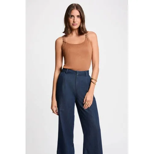 Dit singlet van Morgan is mouwloos en heeft een ronde hals. De stof is soepel. Met siergesp op de schouder draag je dit singlet elke dag en combineer je het makkelijk.