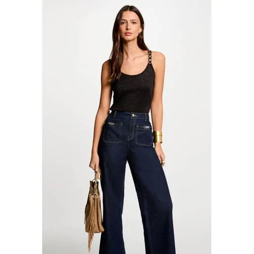 Dit singlet van Morgan is mouwloos en heeft een ronde hals. De stof is gemaakt van katoen. Met een siergesp als detail draag je dit singlet makkelijk bij verschillende outfits, de kleur past overal bij.