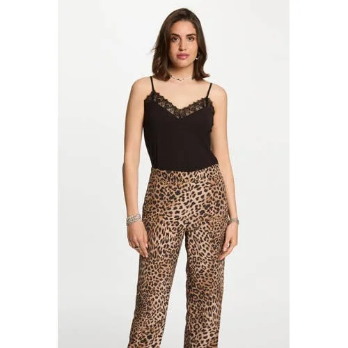 Deze top van Morgan heeft spaghettibandjes en een V-hals. De top is gemaakt van modal en heeft kanten details op de bovenkant, wat zorgt voor een elegante uitstraling.