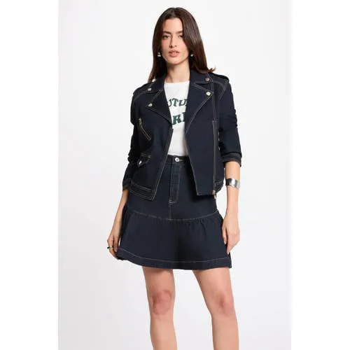 Ga voor een moderne, ontspannen laag met deze Morgan spijkerjas in dark blue denim. De combinatie van een stoere spijkerstof en een biker-geïnspireerde ritssluiting geeft elke outfit direct een actuele uitstraling. Met een nonchalant silhouet, terwijl de reverskraag en de nette afwerking het geheel een verzorgde look geven.Denim met bikerdetailsDark blue denim dat gemakkelijk combineert met andere kleurenReverskraag voor een licht geklede uitstralingLange mouwen, ideaal voor het voorjaar en koele dagenPraktische ritssluiting gecombineerd met knopen als stijlvol detailZijzakken om kleine essentials in op te bergenSoort jas: bikerjack in spijkerstof voor een eigentijdse twistNonchalant stylen in het dagelijks levenDeze jas past goed over een bedrukt T-shirt met een korte, uitlopende rok en loafers voor een casual combinatie. De jas laat zich eenvoudig open of gesloten dragen, afhankelijk van de temperatuur en de rest van je outfit.Morgan: Franse flair in je garderobeMorgan staat bekend om mode met een vrouwelijke en eigentijdse signatuur. Met aandacht voor pasvorm en details biedt het merk kledingstukken die geschikt zijn voor elke dag, van werk tot vrije tijd. Deze jas sluit daar naadloos op aan, met een ontwerp dat is gemaakt om vaak te dragen.Een veelzijdige denim basic die je seizoenen lang bij veel outfits kunt gebruiken.