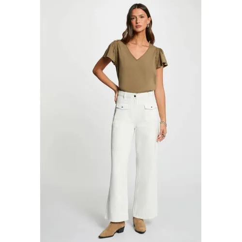 Dit soepel vallende Morgan dames T-shirt is een fijne basis voor dagen waarop je er verzorgd uit wilt zien met weinig moeite. De rechte snit en V-hals geven een moderne, rustige uitstraling, terwijl de subtiele volantdetails langs de mouwen zorgen voor een vrouwelijke en verfijnde look. Dankzij de harmonieuze pasvorm sluit het T-shirt mooi aan zonder strak te zitten.Kenmerken van dit T-shirt met volantdetails Rechte snit die prettig valt en makkelijk te combineren is V-hals die de halslijn mooi laat uitkomen Korte, iets wijde mouwen met volantdetail voor een vrouwelijk accent Effen kleur, ideaal als basisstuk in je garderobe Gemaakt van 58% katoen, 37% polyester en 5% elastaan voor een zachte en lichte stretch Valt klein, het is aan te raden een maat groter te kiezenVan werkdag tot weekendVoor een casual chic effect combineer je dit T-shirt met een broek met een hoge taille en enkellaarsjes. Ook in combinatie met een aangesloten kokerrok komt de vloeiende stof mooi naar voren. De effen kleur maakt het eenvoudig om te dragen onder een blazer of vest, zodat je het T-shirt zowel naar kantoor als in je vrije tijd kunt gebruiken.Morgan: moderne vrouwelijkheidMorgan staat bekend om kleding met een vrouwelijke lijn en een moderne, stadse uitstraling. De ontwerpen spelen in op trends, maar blijven draagbaar in het dagelijks leven. Dit T-shirt laat die stijl goed zien, met aandacht voor details en een pasvorm die ontworpen is voor alledaags comfort.Een soepel T-shirt met subtiele details, ideaal als stijlvolle basis voor veel verschillende outfits.