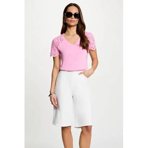 Een lichte basic die overal bij past, dat is deze Morgan katoenen dames top. De top heeft een rechtvallende pasvorm en een V-hals, waardoor het model langs je lichaam valt zonder strak te zitten. Gemaakt van 100% katoen voelt de stof soepel en zacht aan op de huid, prettig voor dagelijks gebruik.Details die je elke dag draagt Gemaakt van 100% katoen voor een zachte, ademende kwaliteit Rechtvallende pasvorm voor een ontspannen en recht silhouet Korte mouwen, geschikt voor warme dagen of als laag onder andere kleding V-halslijn die je hals optisch verlengt Effen kleur, geschikt voor verschillende stijlen en gelegenheden Zonder zakken voor een rustige, strakke uitstraling Maatadvies: dit artikel valt klein, kies bij twijfel een maat groterVeelzijdige basic voor jouw garderobeDe top is geschikt voor je dagelijkse look, naar kantoor of tijdens een etentje. Door de effen kleur past deze top eenvoudig in zowel een casual als een meer geklede outfit en is de top het hele jaar door te dragen.Morgan: eigentijdse Franse stijlMorgan staat bekend om moderne, vrouwelijke collecties met een subtiele Franse signatuur. Het merk focust op draagbare mode met duidelijke lijnen en materialen die prettig aanvoelen, zodat jij je de hele dag comfortabel en verzorgd voelt.Een toegankelijke basic die je garderobe het hele seizoen compleet maakt.