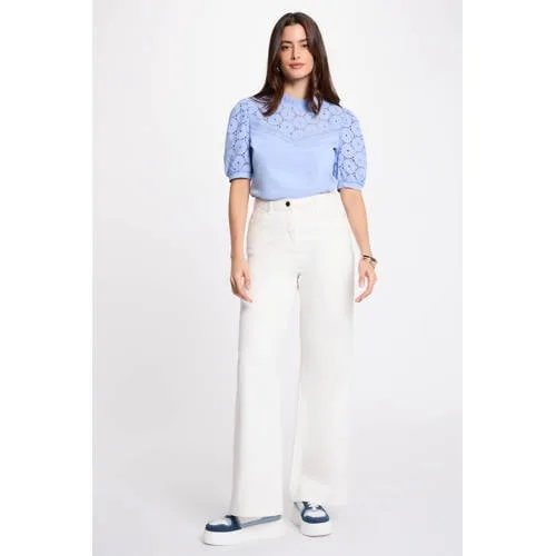 Morgan top broderie blauw