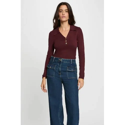 Deze top van Morgan heeft een aansluitende pasvorm en lange rechte mouwen. De top is gemaakt van viscose en heeft een knoopsluiting met een reverskraag. Je draagt deze lekker elke dag.