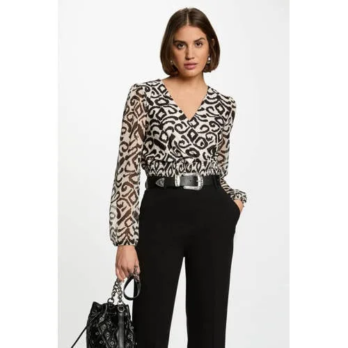 Deze dames top van Morgan heeft een elegante overslagkraag. Het lange mouwontwerp bevat trendy smockwerk. Gemaakt van polyester. Let op: vanwege de pasvorm adviseer ik je om een maat groter te bestellen voor optimaal draagcomfort.