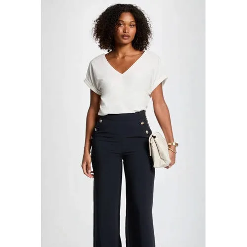 Deze Morgan top heeft korte mouwen en een V-hals. Gemaakt van een katoenmix, biedt deze top een stijlvolle afwerking met unieke kanten details, open details en borduursels. Een veelzijdige keuze voor jouw garderobe.