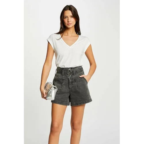Deze top voor dames van Morgan de Toi is gemaakt van een polyestermix. Het model heeft een V-hals en korte mouwen.details van deze top:glitters