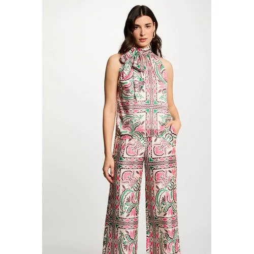 Deze mouwloze satijnen dames top met strikkraag van Morgan geeft je outfit direct een nette, verzorgde uitstraling. De rechte pasvorm valt soepel langs het lichaam en de satijnachtige glans zorgt bij elke beweging voor een licht glanzend effect. De ecru/roze print voegt subtiel kleur toe, waardoor de top passend is bij zowel zakelijke als feestelijke gelegenheden. Door de opstaande kraag met strikdetail krijgt de bovenkant van je silhouet extra structuur, wat vooral goed zichtbaar is bij speciale momenten.Details die het verschil maken Rechte pasvorm die soepel langs het lichaam valt Mouwloos model, ideaal voor warme dagen of onder een blazer Opstaande kraag met strikdetail voor een opvallende halslijn Satijnachtige stof met all over print in ecru/ roze Geschikt als bovenstuk voor bijvoorbeeld een bruiloftsgast Maatadvies: dit artikel valt klein, kies bij twijfel een maat groterStyling voor feest en elke dagVoor een geklede look combineer je deze top met een soepele pantalon en hakken. Meer zomergevoel nodig, bijvoorbeeld als bruiloftsgast of op een feestje, dan staat de top goed op een short met hoge taille en een lichte blazer. Ook onder een nette blazer komt de strikkraag duidelijk naar voren.Morgan: Franse stijl met actuele detailsMorgan ontwerpt kleding met een aangesloten pasvorm en moderne accenten. De collectie is geschikt voor dagelijks gebruik en kan ook eenvoudig worden gedragen bij bijzondere gelegenheden. Met deze top voeg je een doordacht kledingstuk toe dat je in meerdere seizoenen kunt combineren.Een praktische keuze als je zoekt naar een top die geschikt is voor zowel feestelijke als meer alledaagse combinaties.