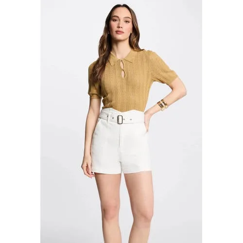 Deze top van Morgan heeft korte mouwen en een polo kraag met knoopsluiting. Het model is gemaakt van viscose en heeft glitters, een ingebreid patroon, kabels en lurex voor een opvallende look.