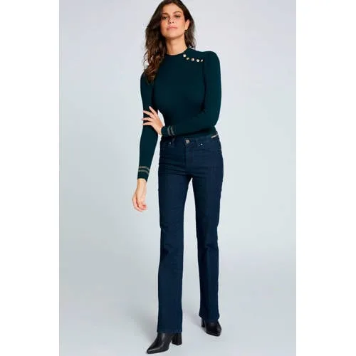 Deze top voor dames van Morgan de Toi is gemaakt van een viscosemix. Het model heeft een opstaande kraag en lange mouwen.