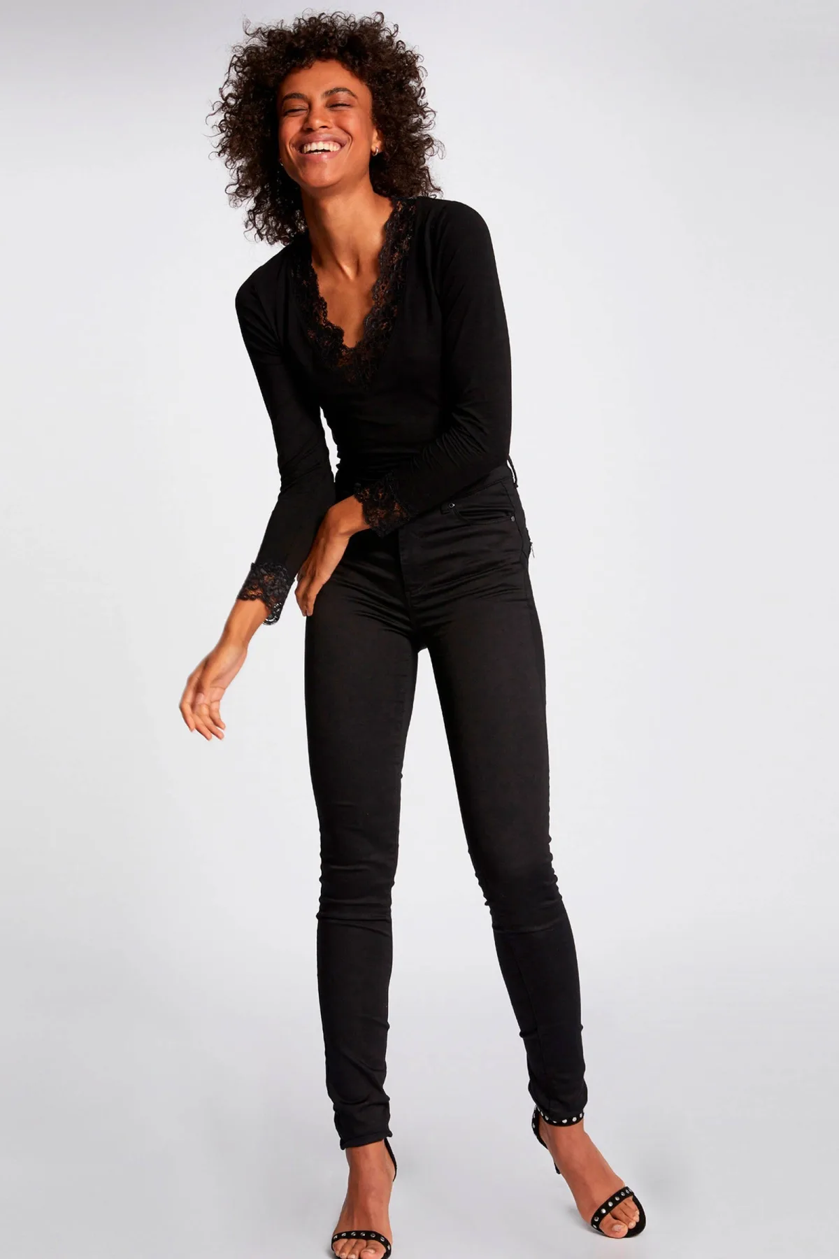 Morgan top met kanten details zwart Prijzen