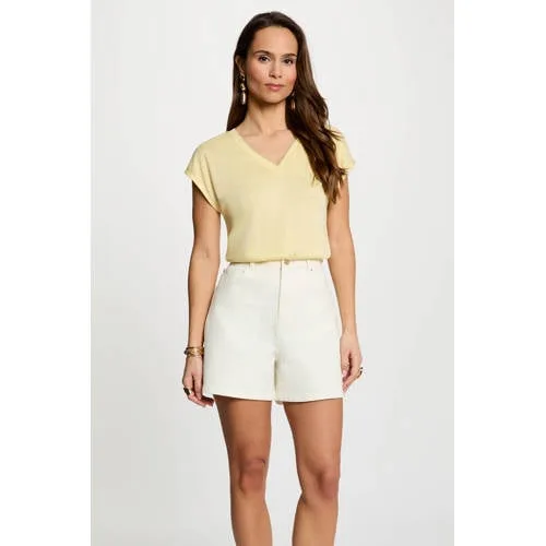 Deze elegante Morgan top dames is een veelzijdig item voor in je garderobe. De top heeft een vrouwelijke V-hals en korte mouwen, waardoor de top zowel geschikt is voor een werkdag als voor een avond uit. De subtiele lurex en contrast bies geven de effen kleur net wat extra glans, zonder te overheersen. Gemaakt van 66% viscose en 34% polyester voelt de stof soepel aan en blijft de vorm mooi.Verfijnde details voor elke dag V-hals die de halslijn mooi laat uitkomen Korte mouwen, prettig voor de warmere dagen of onder een vest of blazer Effen ontwerp met contrast bies voor een rustige maar moderne uitstraling Lurex details zorgen voor een subtiele glans in het licht Gemaakt van 66% viscose en 34% polyester voor een soepele, zachte stof Geen zakken voor een slank en clean silhouet Maatadvies: dit artikel valt klein, kies bij voorkeur een maat groterGemakkelijk te combinerenDe top is eenvoudig te stylen met een jeans, rok of nette broek. Onder een blazer krijgt je outfit een geklede uitstraling, terwijl de lurex details meteen wat extra sfeer geven aan een eenvoudige look.Morgan: vrouwelijke mode met gevoel voor detailMorgan staat bekend om eigentijdse, vrouwelijke mode met aandacht voor pasvorm en mooie details. De collecties sluiten aan bij een druk leven waarin je kleding graag stijlvol, comfortabel en makkelijk te combineren is.Een stijlvolle basic met subtiele glans die je op veel momenten uit de kast pakt.