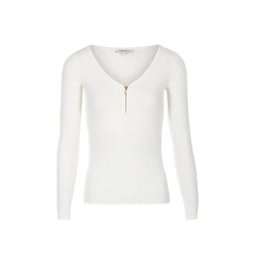 Dames top van Morgen de Toi. Dit model is gemaakt van een soepele stof met ribbel textuur en een aansluitende fit. De top heeft een ronde hals met rits en lange mouwen.