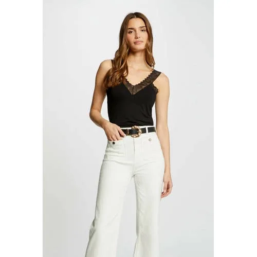 Deze top voor dames van Morgan de Toi is gemaakt van een viscosemix. Het mouwloze model heeft een V-hals.details van deze top:kanten details