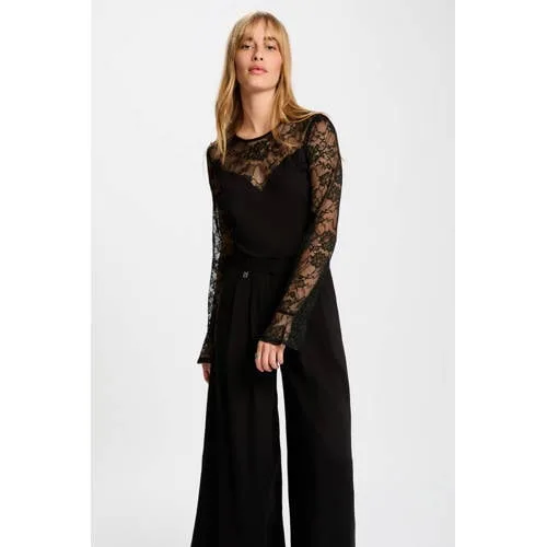 Deze getailleerde Morgan top dames legt het accent op de taille en volgt soepel de lijnen van het lichaam. Het fijne kant en de semi-transparante inzetstukken zorgen voor een verzorgd effect, terwijl de effen kleur het T-shirt geschikt maakt voor verschillende momenten op de dag.Kanten accenten en aansluitende pasvorm Getailleerde snit die dicht langs het lichaam valt voor een vrouwelijke lijn Ronde hals die de halslijn subtiel omlijst Lange, rechte mouwen voor extra bedekking en een rustige uitstraling Kant en semi-transparante delen voor een sierlijk, modern detail Effen kleur, goed te combineren met andere kledingstukken Gemaakt van viscose, polyamide en elastaan voor een soepel en licht elastisch gevoel tijdens het dragen Dit artikel valt klein, bij twijfel kan een grotere maat passend zijnGeschikt voor werk, diner en vrije tijdDeze top is een optie voor momenten waarop een verzorgde look gewenst is. De combinatie van kant en een aansluitend model maakt het T-shirt passend bij zowel een werkdag als een diner of een avond uit. Door de lange mouwen is de top ook prettig te dragen in het voor- en najaar.Morgan en eigentijdse vrouwelijkheidMorgan richt zich op kleding met een vrouwelijke snit en aandacht voor details. Het merk gebruikt vaak verfijnde materialen en modieuze afwerkingen, waardoor de afwerking duidelijk zichtbaar is. Met deze top haal je een basisstuk in huis dat aansluit bij de eigentijdse, city-chic stijl waar Morgan om bekendstaat.Een top met kanten details en een aangesloten pasvorm, geschikt voor uiteenlopende gelegenheden.