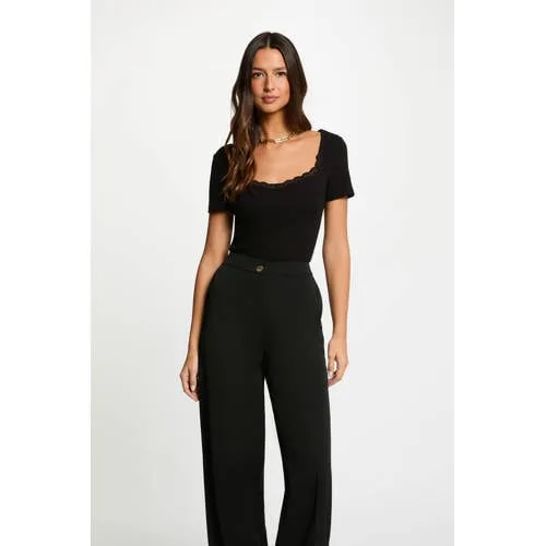 Deze Morgan top is een stijlvolle basis voor elke dag. De getailleerde pasvorm volgt subtiel de vormen van het lichaam en zorgt voor een vrouwelijke uitstraling zonder te strak te zitten. De hartvormige halslijn met lichte overslageffect geeft het T-shirt net wat extra verfijning, terwijl de korte mouwen zorgen voor een luchtig en modern geheel. Door de effen kleur is dit een veelzijdig item dat makkelijk te combineren is met je bestaande garderobe.Details die het verschil maken Getailleerde pasvorm die de taille accentueert Hartvormige halslijn met overslagkraag voor een elegante belijning Korte, rechte mouwen voor een tijdloze look Gemaakt van 54% katoen, 43% viscose en 3% elastaan voor een soepele stretch Fijne kantdetails voor een subtiel vrouwelijk accent Effen uitvoering, ideaal om zowel casual als gekleed te dragen Valt klein, veel mensen kiezen een maat groter voor extra comfortVan kantoor tot avond uitDit T-shirt leent zich goed voor verschillende momenten van de dag. Combineer het met een pantalon met hoge taille en enkellaarsjes voor een verzorgde werklook. Liever iets gekleder, dan past een nauwsluitende kokerrok met een kort jasje en een compacte tas er uitstekend bij.De stijl van MorganMorgan staat bekend om vrouwelijke kleding met een moderne twist. Het merk focust op mooie lijnen, draagbare ontwerpen en doordachte details, zodat je je de hele dag zelfverzekerd voelt in wat je draagt.Een veelzijdige top die je garderobe net wat eleganter maakt, zonder in te leveren op draagcomfort.
