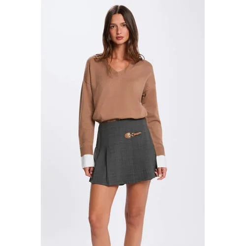 Deze fijngebreide Morgan V-hals trui is een toegankelijke basic met subtiele details. De aangesloten pasvorm volgt rustig de lijnen van het lichaam en de V-hals zorgt voor een open, vrouwelijke uitstraling. De trui is effen van kleur, waardoor het model eenvoudig te combineren is met jeans, een nette broek of rok.Fijn breisel met bijzondere manchetten Aangesloten pasvorm voor een slank ogend silhouet V-hals die de halslijn mooi laat uitkomen Lange, rechte mouwen voor extra bedekking en warmte Fijn breiwerk dat zacht en soepel aanvoelt Shirt-effect inzetstukken aan de manchetten voor een gelaagd effect Gemaakt van viscose (52%), polyester (30%) en polyamide (18%) Effen kleur, makkelijk te combineren in verschillende stijlen Valt klein, een maat groter kan prettiger zittenIdeaal voor kantoor, thuis of onderwegDeze trui past goed in een drukke week. Op kantoor combineer je het model met een pantalon of kokerrok, in het weekend staat het fijngebreide ontwerp mooi op een jeans. De lange mouwen en het lichte breisel maken de trui geschikt voor meerdere seizoenen, zowel solo gedragen als onder een blazer of vest.Morgan: eigentijdse stijl met Franse touchMorgan staat bekend om kleding die elegantie en dagelijks gebruik combineert. Het merk werkt met doordachte pasvormen en modieuze details, zodat elk item net even anders is. Met deze trui haal je een betrouwbaar kledingstuk in huis dat is ontworpen met aandacht voor draaggemak en een verzorgde uitstraling.Een comfortabele trui die je garderobe op een rustige en stijlvolle manier compleet maakt.