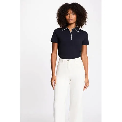 Geef je garderobe een moderne update met deze Morgan trui met korte mouwen. De lichte, fijngebreide kwaliteit zorgt voor een soepel gevoel op de huid, terwijl de getailleerde snit het silhouet mooi volgt. De combinatie van een poloachtige kraag met revers en knoopsluiting geeft een verzorgde, eigentijdse uitstraling die zowel geschikt is voor een werkdag als voor ontspannen momenten.Kenmerken van deze lichte trui Getailleerde pasvorm die de vormen subtiel accentueert Polo kraag met revers en knoopsluiting voor een moderne, gestructureerde look Korte, rechte mouwen voor een luchtig en vrouwelijk effect Gemaakt van 95 procent katoen en vijf procent elastaan voor een zacht gevoel en lichte stretch Effen kleur met contrast bies als stijlvol detail Fijn gebreid, ideaal voor laagjes en voor binnen het hele jaar door Maatadvies: dit artikel valt klein, bij twijfel is een maat groter aan te raden Onderhoud: wassen op 30°C fijnwas, niet in de wasdroger en strijken op lage temperatuur zonder stoomEen lichte trui met aandacht voor detailDeze trui brengt structuur en zachtheid samen in één ontwerp. De reverskraag en knoopsluiting geven een nette, verzorgde uitstraling, terwijl de lichte stof en korte mouwen zorgen voor draagcomfort op warme dagen of onder een blazer. De effen kleur en subtiele contrast bies maken het een rustige basis in de kledingkast.Het karakter van MorganMorgan staat bekend om vrouwelijke modellen met een moderne uitstraling. Het merk focust op silhouetten die het lichaam mooi volgen en op details die direct in het oog vallen. Met deze trui haal je een stijlvol kledingstuk in huis dat past bij de eigentijdse, stadsgerichte stijl waar Morgan om bekendstaat.Een lichte, fijngebreide trui die elke dag zorgt voor een verzorgde en vrouwelijke uitstraling.