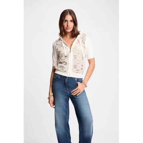 Til je casual look naar een hoger niveau met dit Morgan vest met korte mouwen en capuchon. Het korte, aangesloten model volgt soepel je silhouet en is ideaal om over een top of jurkje te dragen. De fijne stof combineert comfort met een verzorgde uitstraling en de subtiele kantaccenten aan de voorkant geven het vest een vrouwelijke en verfijnde touch.Verfijnde details voor elke dag Aangesloten snit en kort model voor een moderne look Korte, rechte mouwen die prettig dragen in het voorjaar en de zomer Capuchon en ritssluiting aan de voorkant voor een sportief accent Kantaccenten en broderie-details aan de voorkant voor een elegante afwerking Gemaakt van 70% viscose en 30% polyamide, details: 100% polyester Effen kleur, makkelijk te combineren met je favoriete basics Semi-transparante details voor een lichte, stijlvolle uitstraling Maatadvies: dit vest valt klein, kies bij twijfel een maat groterMakkelijke laag over je dagelijkse outfitDit vest is een fijne extra laag voor dagen waarop je iets luchtigs wilt dragen, maar toch bedekt wilt zijn. Het korte model staat goed boven een hoge taille broek, rok of een aansluitende jurk. Door de effen kleur pak je het er snel bij, of je nu naar je werk gaat of een ontspannen dag hebt.Morgan: Franse flair met aandacht voor detailMorgan staat bekend om modieuze items met een vrouwelijke twist. Elk ontwerp heeft aandacht voor vorm, details en draagbaarheid. Zo haal je met dit vest een stijlvol kledingstuk in huis dat past bij een moderne, veelzijdige garderobe.Een licht vest dat je outfit op een subtiele manier afmaakt, zonder in te leveren op comfort.