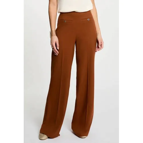 Geef je dagelijkse outfits een stijlvolle upgrade met deze cognackleurige wide leg broek met hoge taille van Morgan. De lange, wijde pijpen laten je benen optisch langer lijken en de hoge tailleband sluit mooi aan rond je middel. Het soepele materiaal met lichte stretch beweegt makkelijk met je mee, zodat je je de hele dag vrij kunt bewegen, of je nu onderweg bent naar kantoor of een etentje.Details die het verschil maken Wijde snit met lange pijpen voor een elegante, vloeiende look Hoge taille met elastische tailleband voor extra draaggemak Cognac kleur die eenvoudig te combineren is met neutrale en warme tinten Sierzakken voor een rustige, nette uitstraling Soepel materiaal met 4% elastaan voor een comfortabele pasvorm Maatadvies: dit artikel valt klein, kies bij twijfel een maat groterVan werkdag tot dinerVoor een zakelijke look combineer je deze broek met een gestructureerde blouse en nette laarsjes. In het weekend staat hij mooi met een T-shirt of een luchtige top en sneakers. De cognac kleur past goed bij zwart, crème, ecru en zachte pasteltinten, waardoor deze broek eenvoudig in je garderobe past.Franse signatuur van MorganMorgan is een Frans modemerk dat al jaren bekendstaat om vrouwelijke, stadse collecties met een moderne twist. Elke collectie wordt ontworpen met aandacht voor details en pasvorm, zodat je kleding kiest waar je je zelfverzekerd en comfortabel in voelt, op kantoor, tijdens een avond uit of op een ontspannen dag.Een veelzijdige broek die je graag uit de kast pakt voor zowel alledaagse als meer geklede momenten.